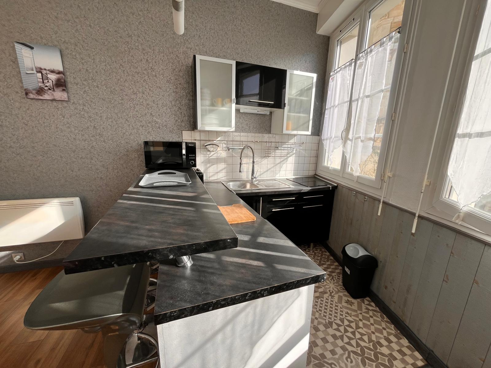 Coeur du centre-ville des SABLES D'OLONNE, à 100 mètres de la grande plage et à proximité immédiate des commerces, appartement de type STUDIO vendu entièrement MEUBLÉ comprenant : entrée avec placard, pièce de vie avec cuisine ouverte, équipée et aménagée, chambre en mezzanine et également canapé-lit ( total 4 couchages), salle d'eau et wc. Exposition sud. Possibilité de vente à terme : paiement comptant de 100 000 euros net vendeur et 6800 € d'honoraires d'agence, puis 60 000 euros net vendeur sur 5 ans; soit 1000 euros par mois. Bien soumis au statut de la copropriété - syndic professionnel - pas de procédure en cours - 39 lots au total dont 34 principaux - charges annuelles de copropriété : 710 € soit 59 € par mois. Les risques auxquels ce bien est exposé sont consultables sur https :// wwwgeorisques.gouv.fr